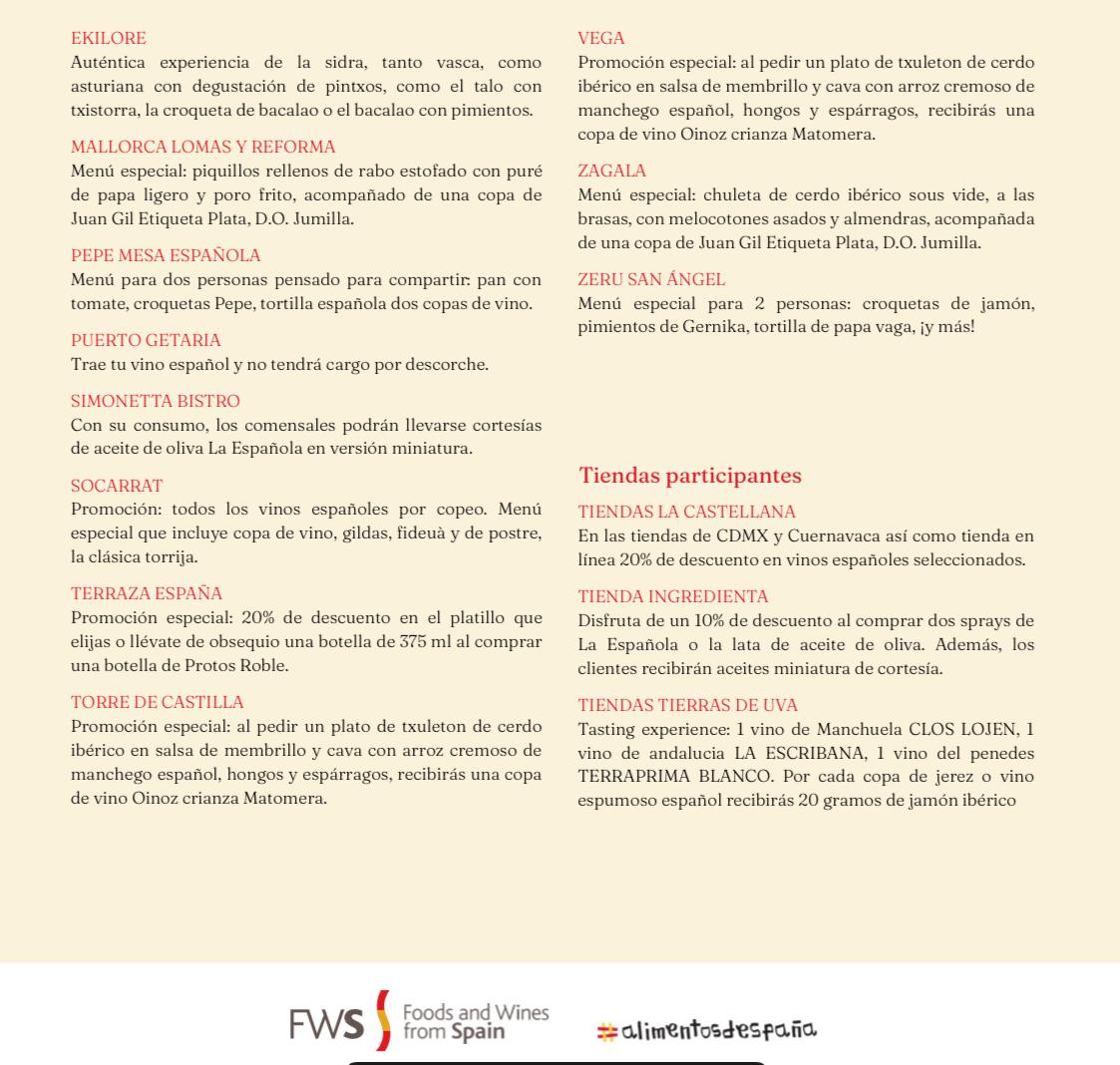 Durante dos semanas, los aromas y sabores de España invadirán los restaurantes, bares y tiendas gourmet más reconocidos de la ciudad. Habrá rutas de tapas, cenas maridaje, catas guiadas y menús degustación diseñados para acercar al público mexicano a la esencia de las Denominaciones de Origen que definen la gastronomía española.