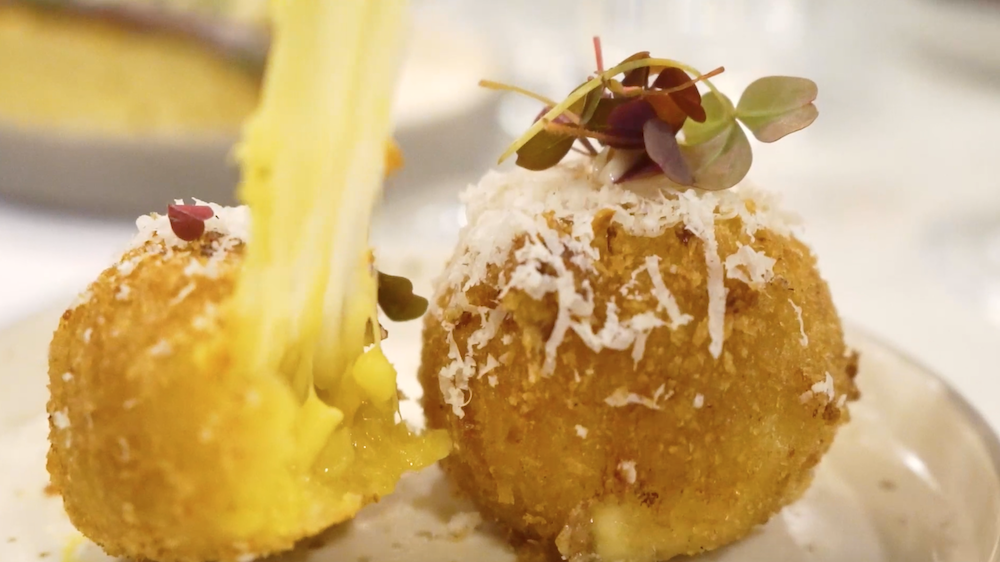 - Arancini frito relleno de mozzarella y azafrán